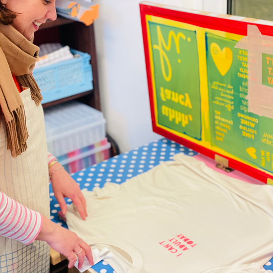 Entdecke die kreative Welt des Siebdrucks in unserem Glückswerk – und drucke dich glücklich. Im Glückswerk wirst du in kreativer Atmosphäre und mit positiven Vibes deine eigenen Werkstücke erstellen.